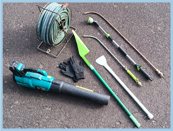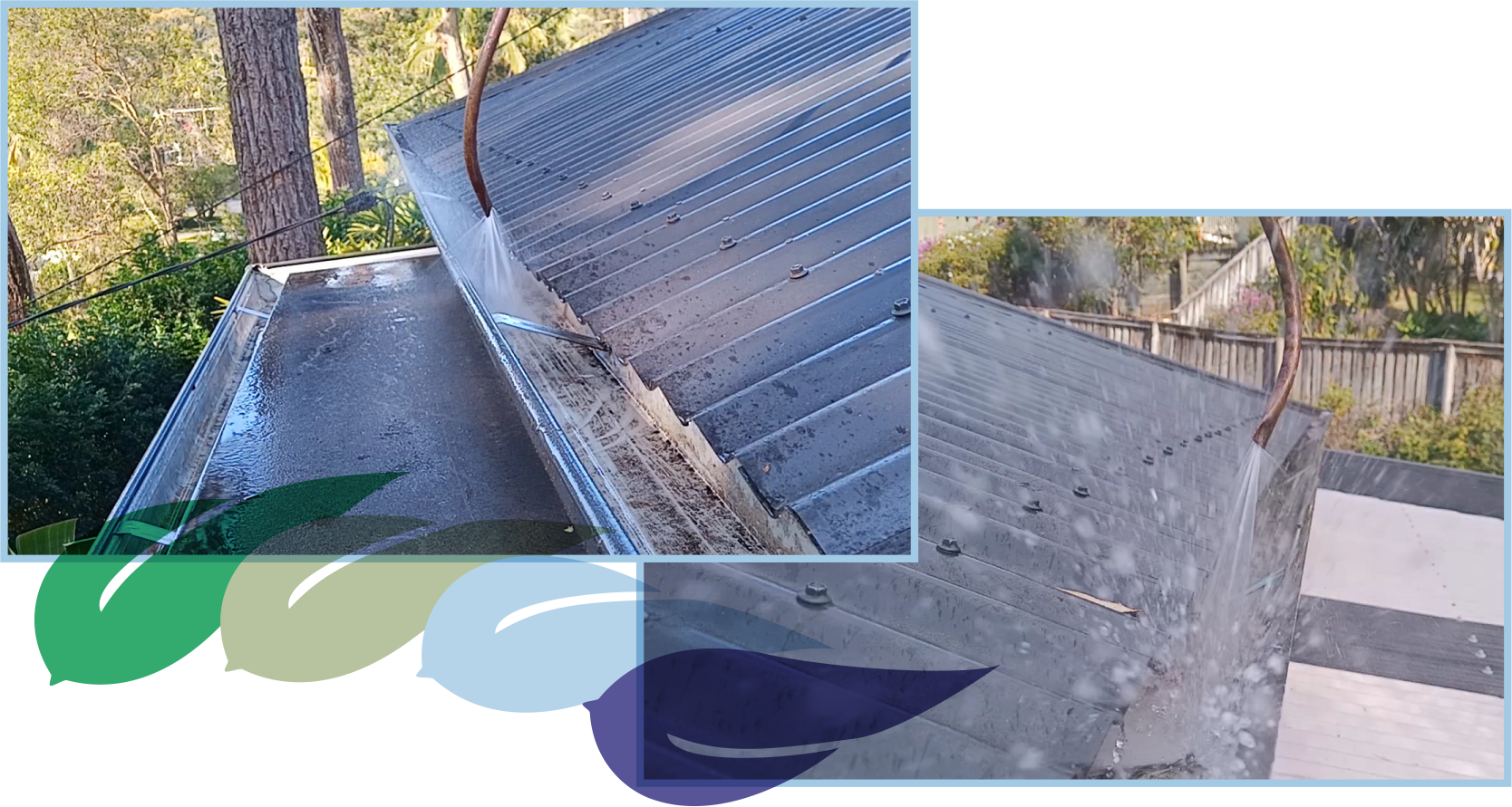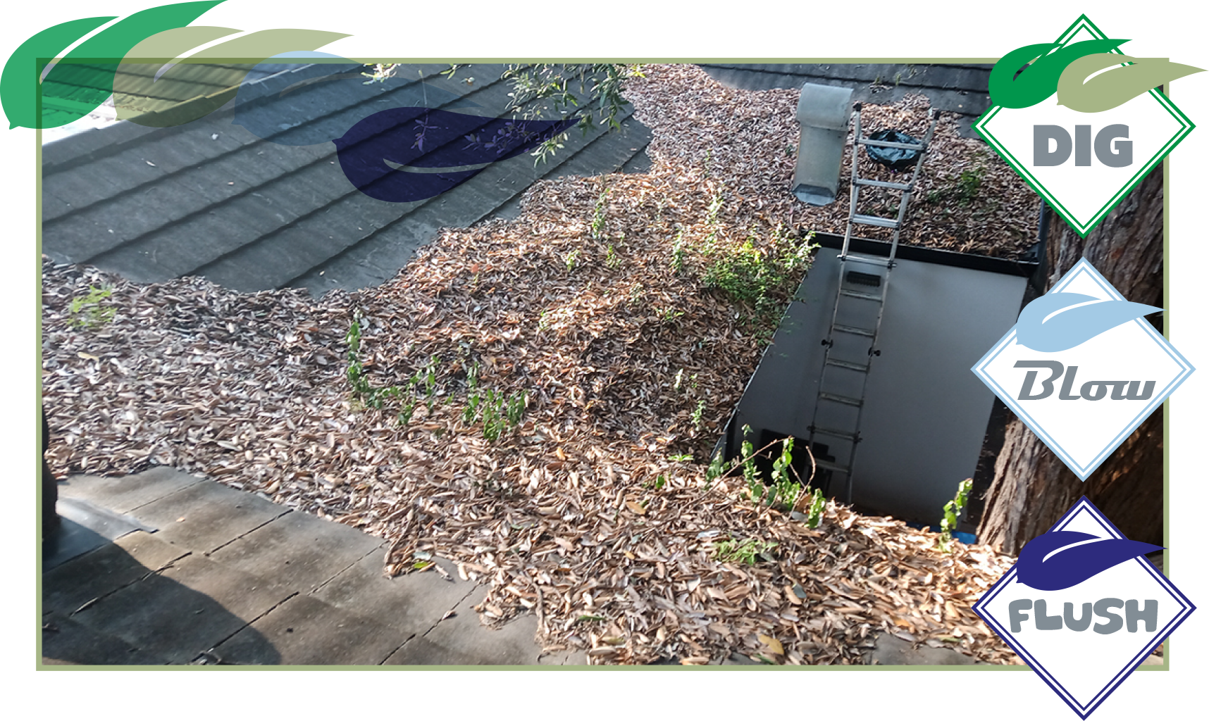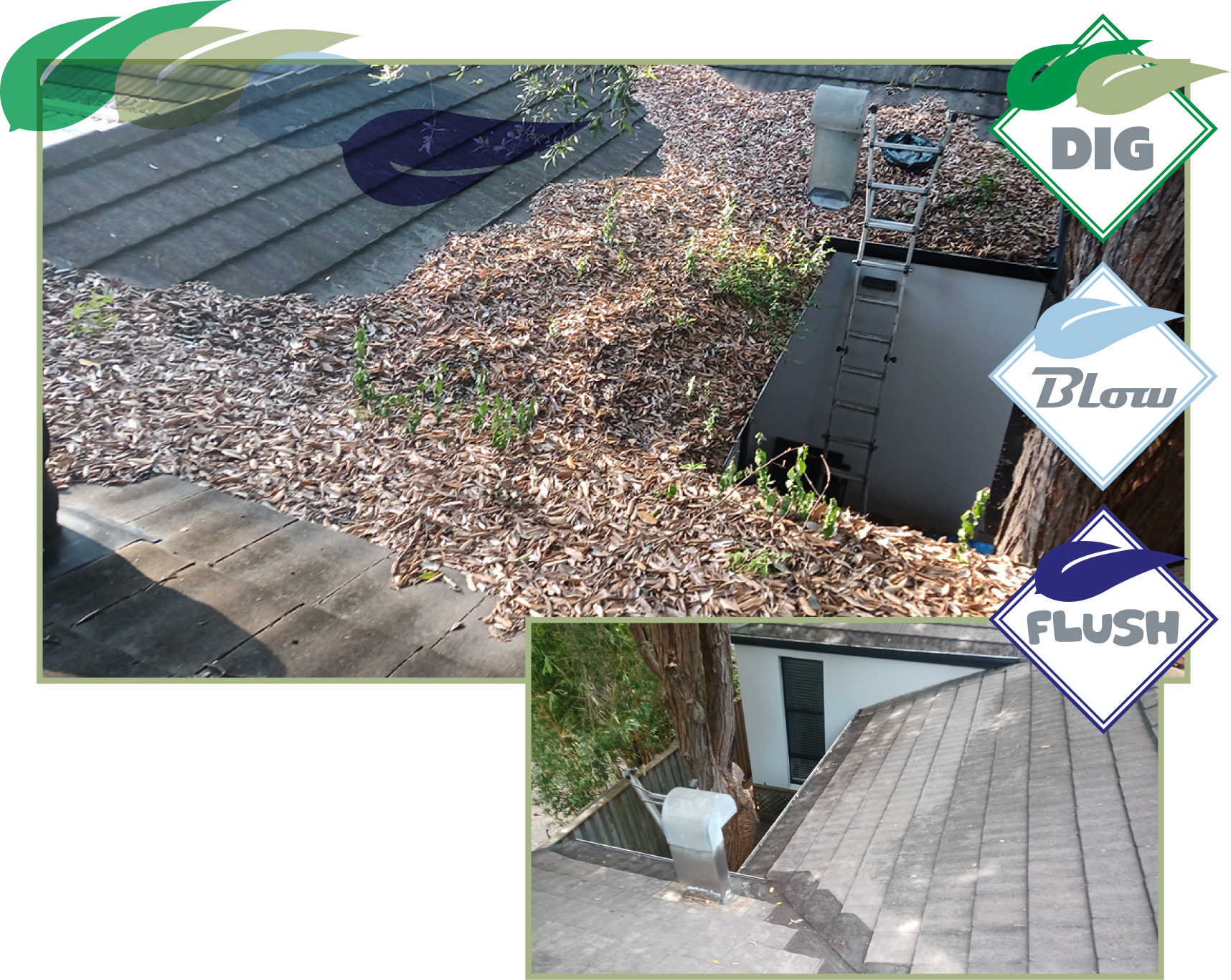 Debris is taken from your gutters & placed into your green bin or garden bags...